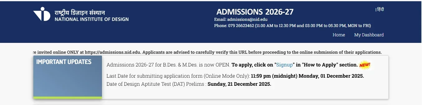 - Step 1: Visit the official NID website at admissions.nid.edu.